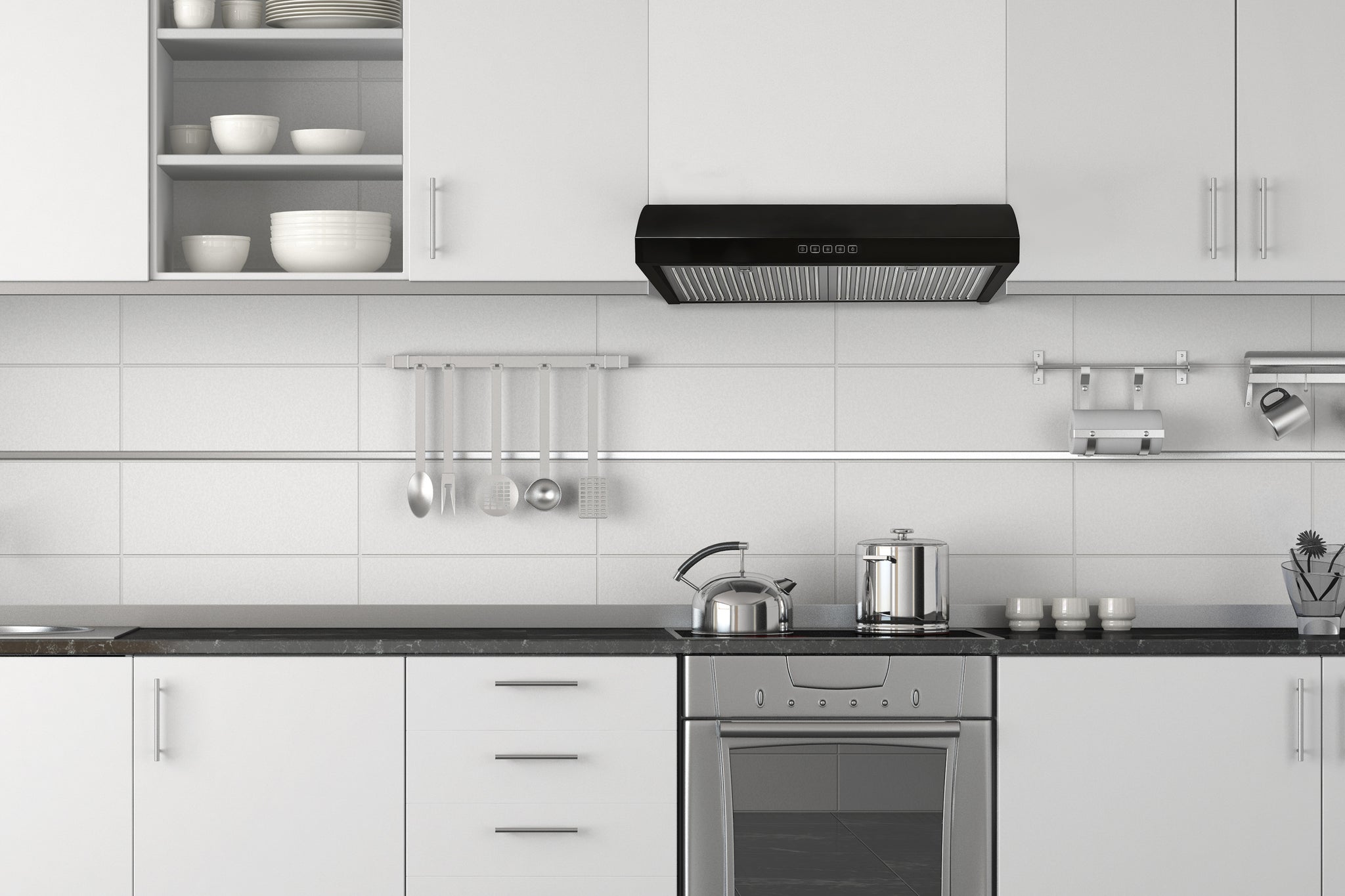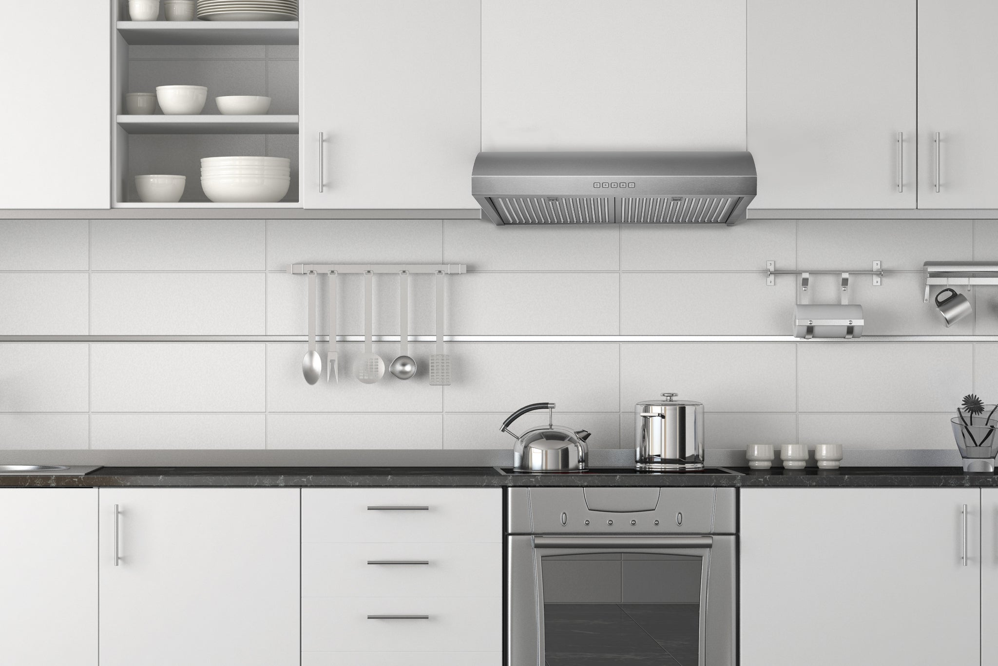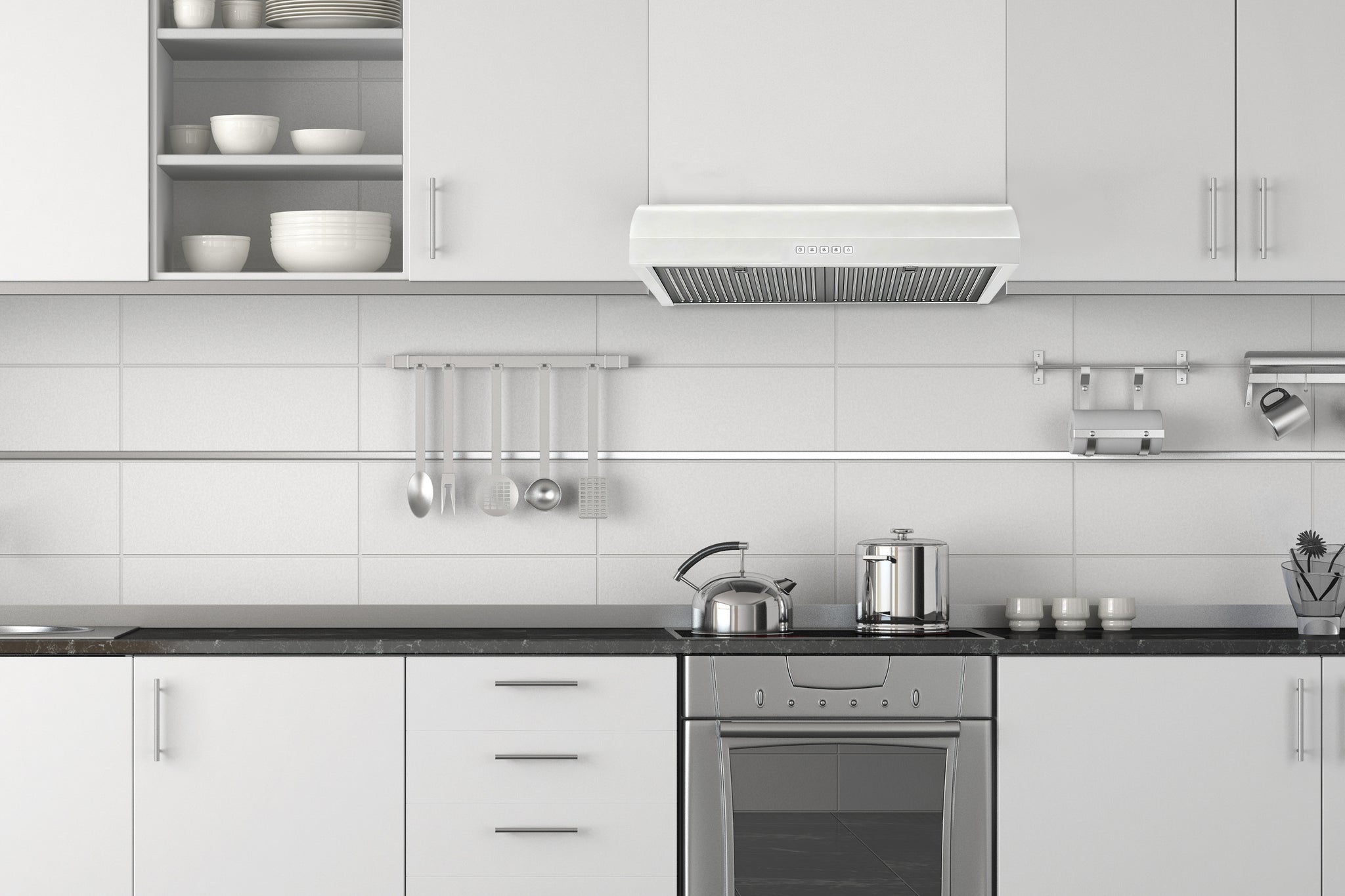 Under-cabinet range hood with sleek, minimalist design