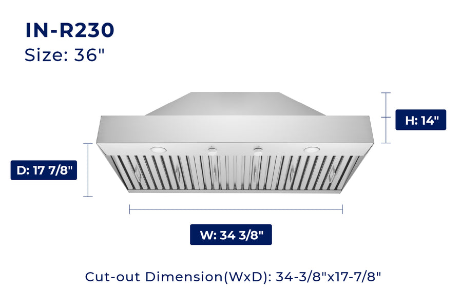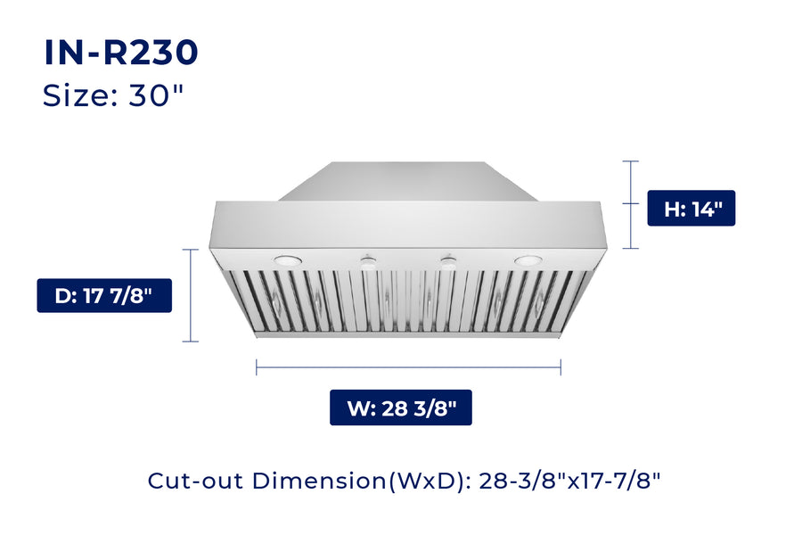 IN-R230 Insert Built-in Range Hood - Convertible - 17.87" Deep