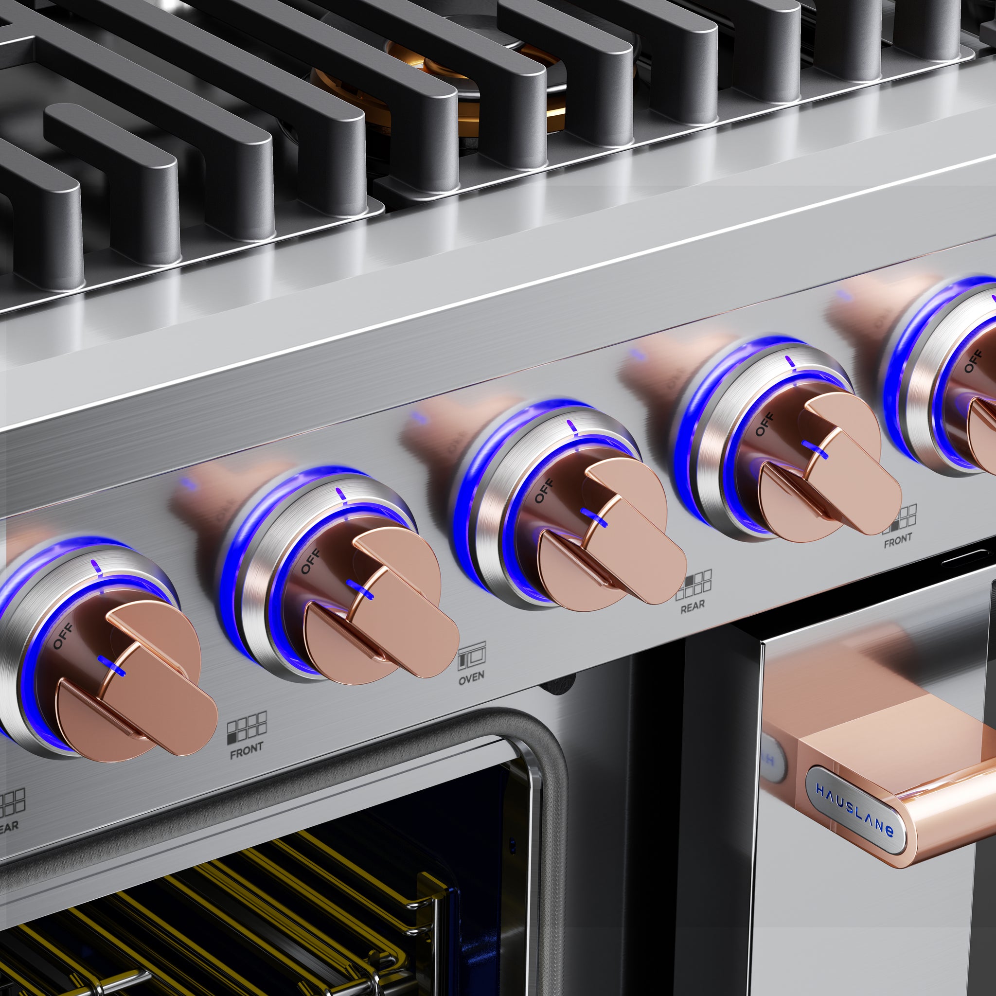 • Gas Powered Range (Gas): Preheats quickly and delivers reliable roasting, complemented by the intense heat of an open-flame broiler.