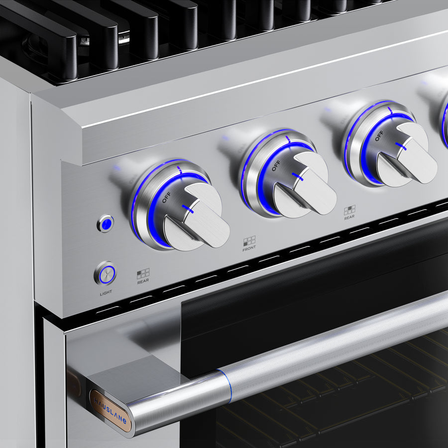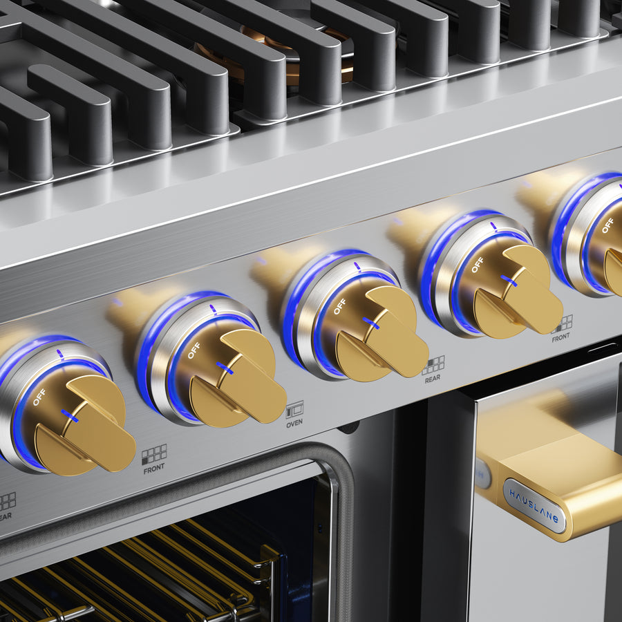 Rediscover the joy of cooking with Hauslane’s HausPro gas/dual fuel range, because life’s too short for weak flames and soggy casseroles. Roaring burners hit up to 20,000 BTUs and have the power to sear, sauté, and flambé like a pro. The spacious convection oven is your secret weapon for cakes that rise, roasts that impress, and cookies that mysteriously vanish within minutes. Hosting Thanksgiving? No sweat! You’ve got five rack positions and up to four telescopic pull-outs that practically cheer you on. Easy-slide grates save your back when wrangling heavy pots, while the stainless steel finish wipes clean faster than your kids can deny eating the last cookie. With a limited-lifetime burner warranty and a 5-year parts and labor oven warranty, the HausPro range doesn’t just cook, it sticks around to brag about it.