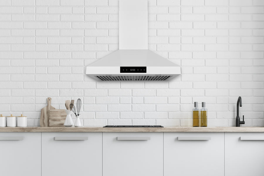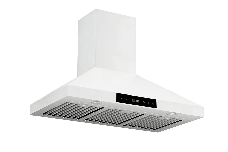 Practical, powerful, and built for home chefs. The Hauslane WM-538 wall-mount range hood delivers strong 860 CFM suction with six fan speeds and easy touch-screen control. Power Control Technology™ lets you cap airflow to meet local requirements, while the optional remote control offers ADA-accessible operation. Enjoy energy-saving LED lights, dishwasher-safe baffle filters, and auto delay shut-off, all in a convertible design with an extendable chimney for flexible installation.